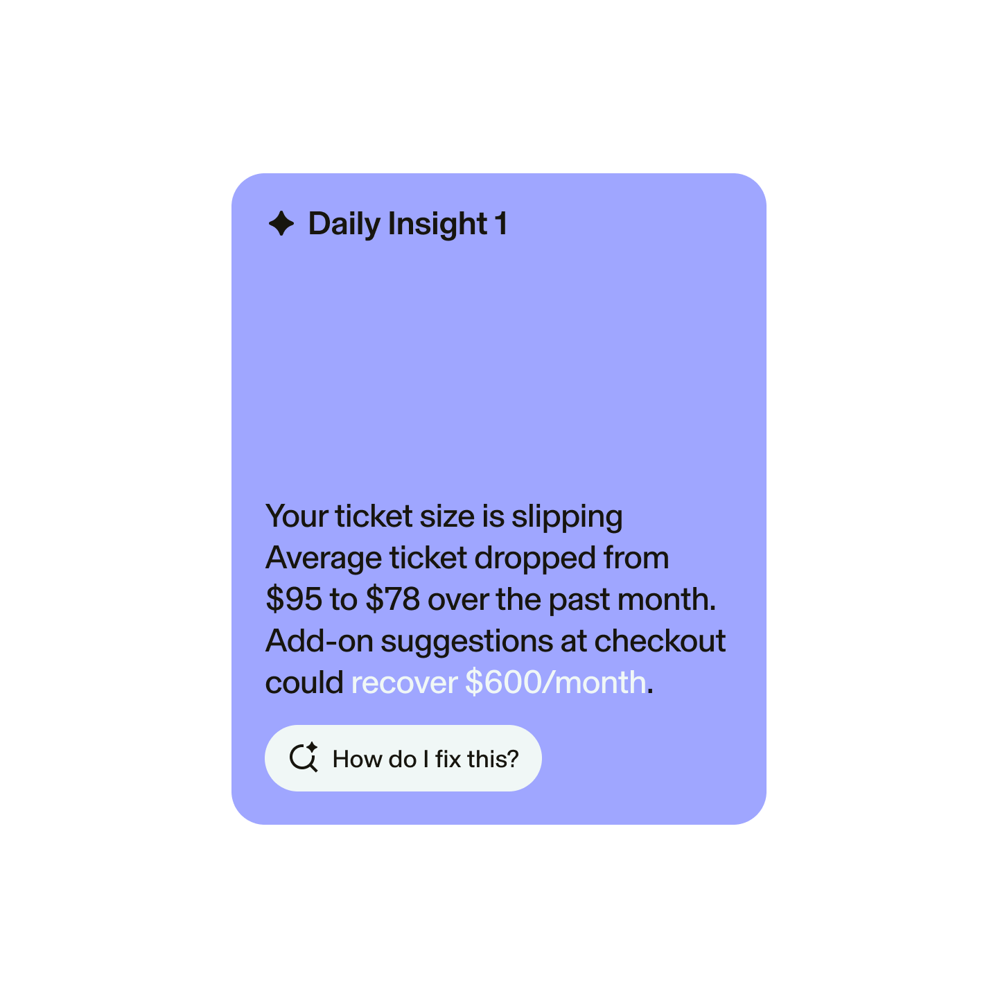 While other AI tools give you generic advice, the AI Growth Analyst lives inside your business — constantly analyzing your data and finding revenue opportunities tailored to your unique business.