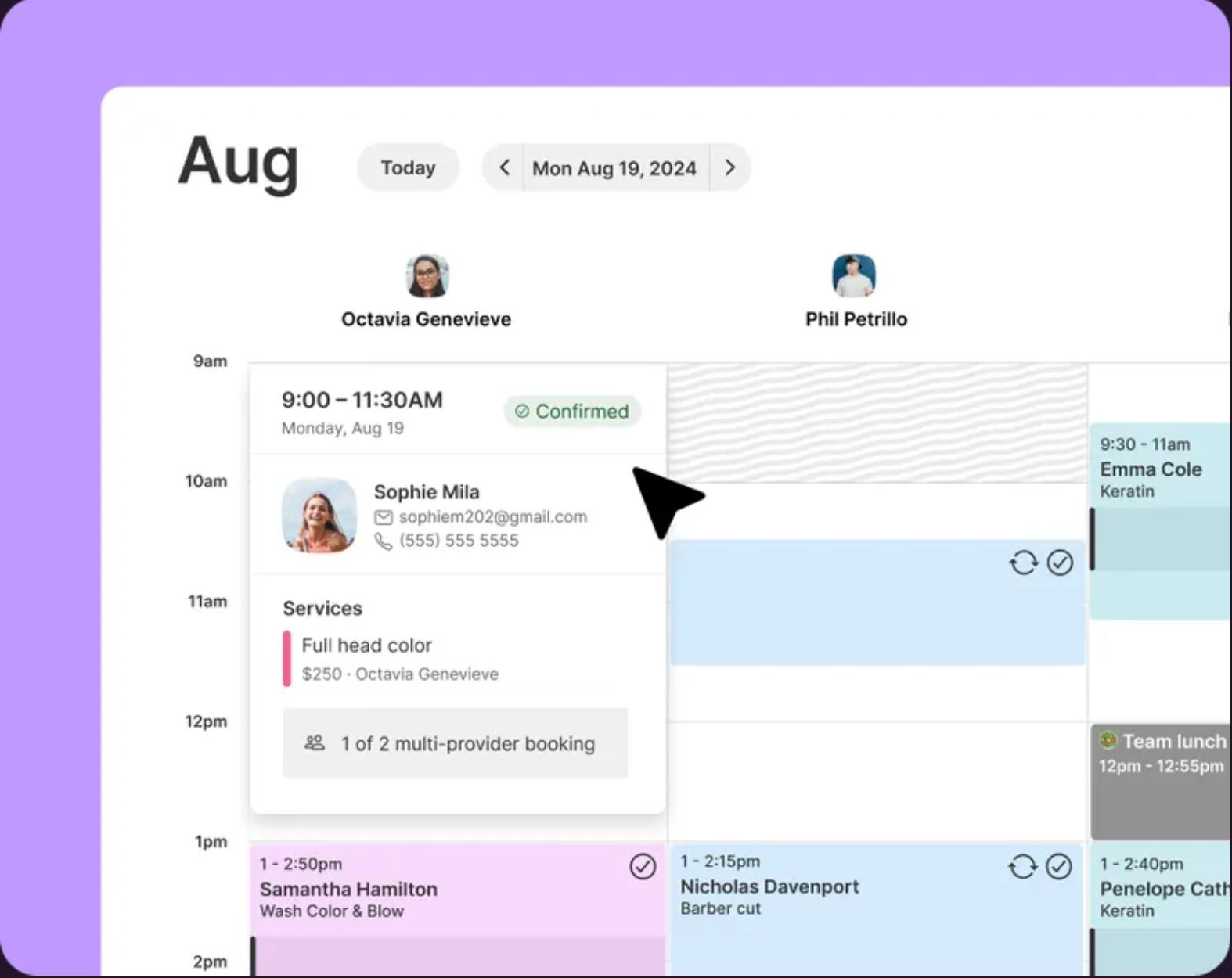 One downside is that, because it wasn’t built for the beauty and wellness industry, it may not integrate easily into your booking system. Having a separate calendar for your staff management and salon client appointments could be a nightmare.