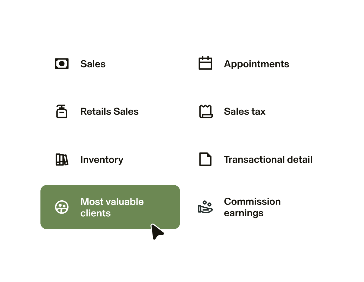 We track expenses, inventory, client retention, average sales, and more so you can stay on top of progress. Take the stress out of tax season by easily exporting all of your bookkeeping data.