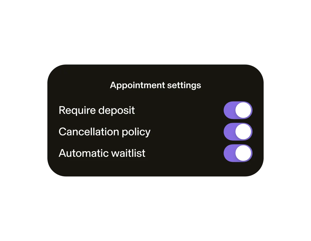 Protect your time and money by setting custom cancellation policies or requiring deposits or card-on-file at booking