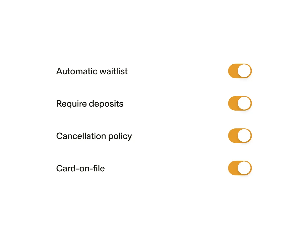 Protect your time and money by setting custom cancellation policies or requiring deposits or card-on-file at booking
