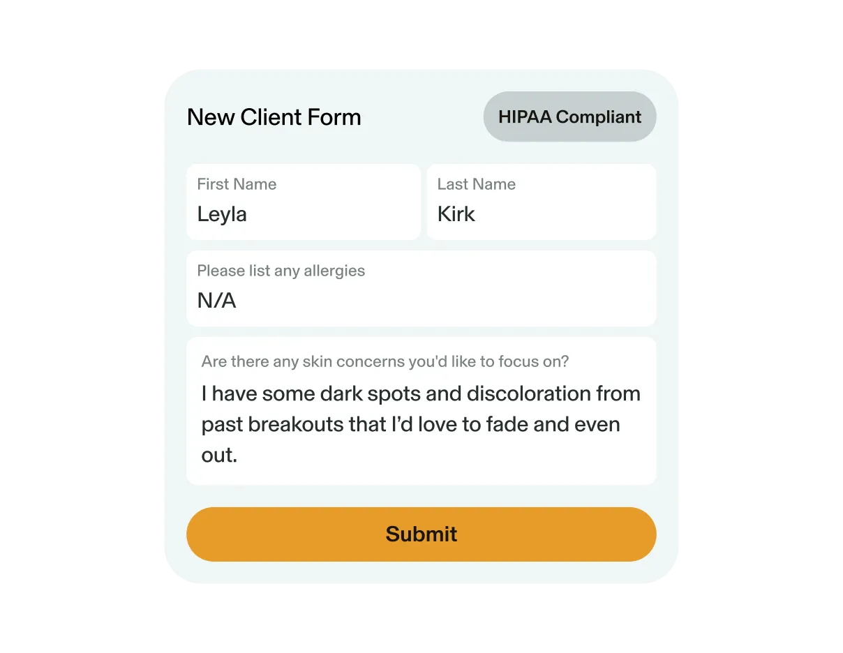 Easily build and customize Forms, streamlining booking and keeping all your client information in one place.