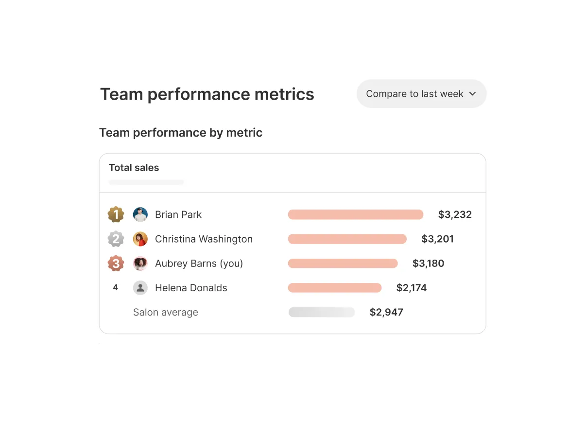 - Real-time performance tracking: The ability to see sales, rebooking rates, and average ticket value instantly.