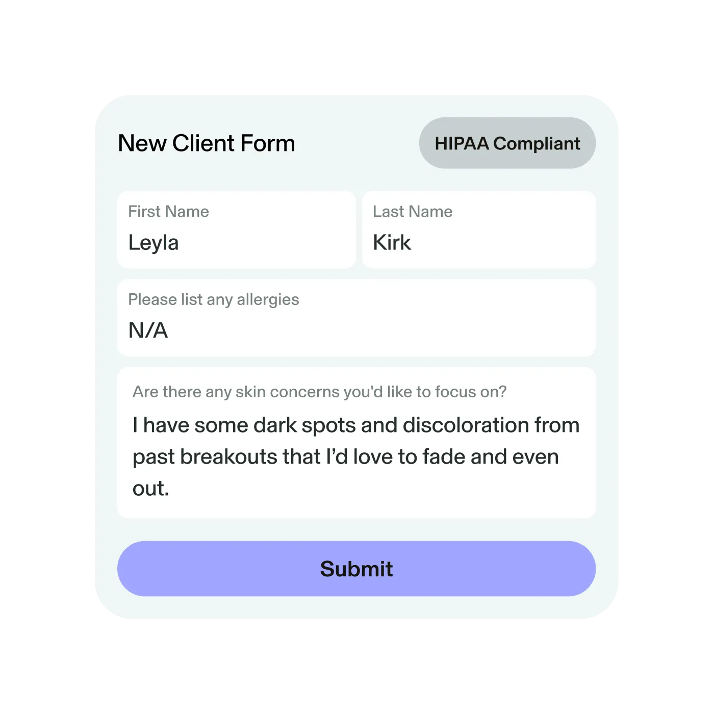 - Centralized data: It collects and stores all client contact information, appointment history, provider notes, and more in a secure digital profile for easy reference and personalization.