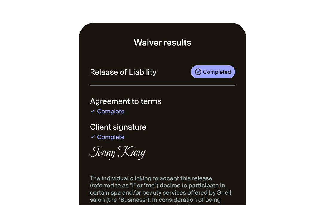 Automatically send intake forms, medical history, and waivers at booking. Clients e-sign digitally before arrival, so check-in takes seconds, not minutes.